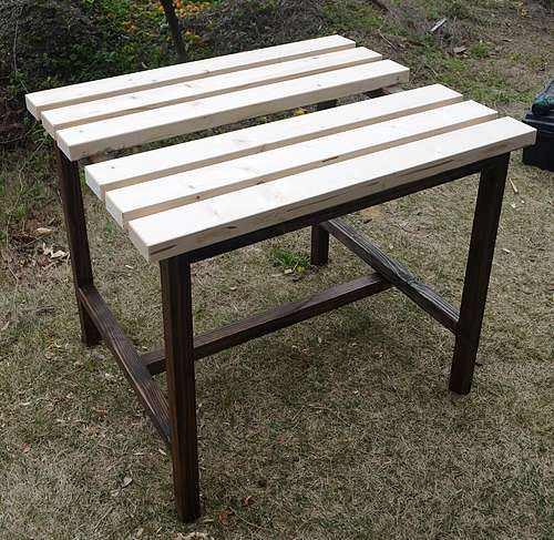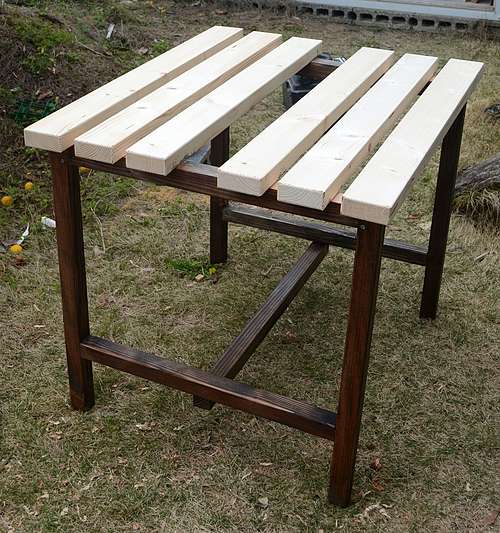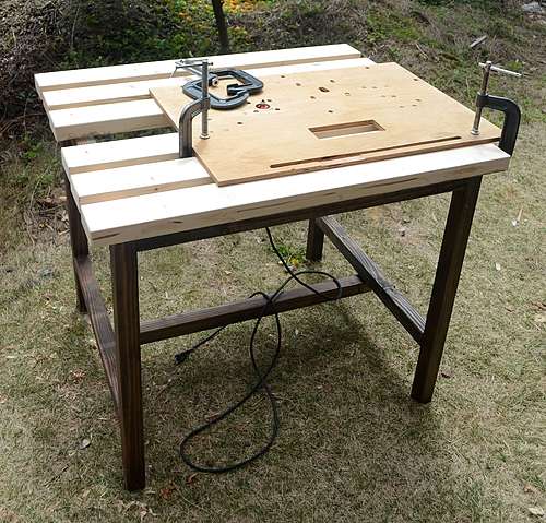 今までは作業台がないままいろいろなものを作っていました。さすがにそれでは効率が悪いので作ることにしました。作業台の足は適当にあったものを使い、その上に載せているものはホームセンターで買ったものです。天板は隙間を空けてクランプが使えるようにし、中央の隙間はトリマーやルーターをセットできるように開けています。本当なら引き出しなどをつけて工具などが入れられるようにすればいいのですが、面倒なので当面はこのまま使っています。