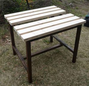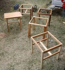 外で座る椅子と作業用補助台
